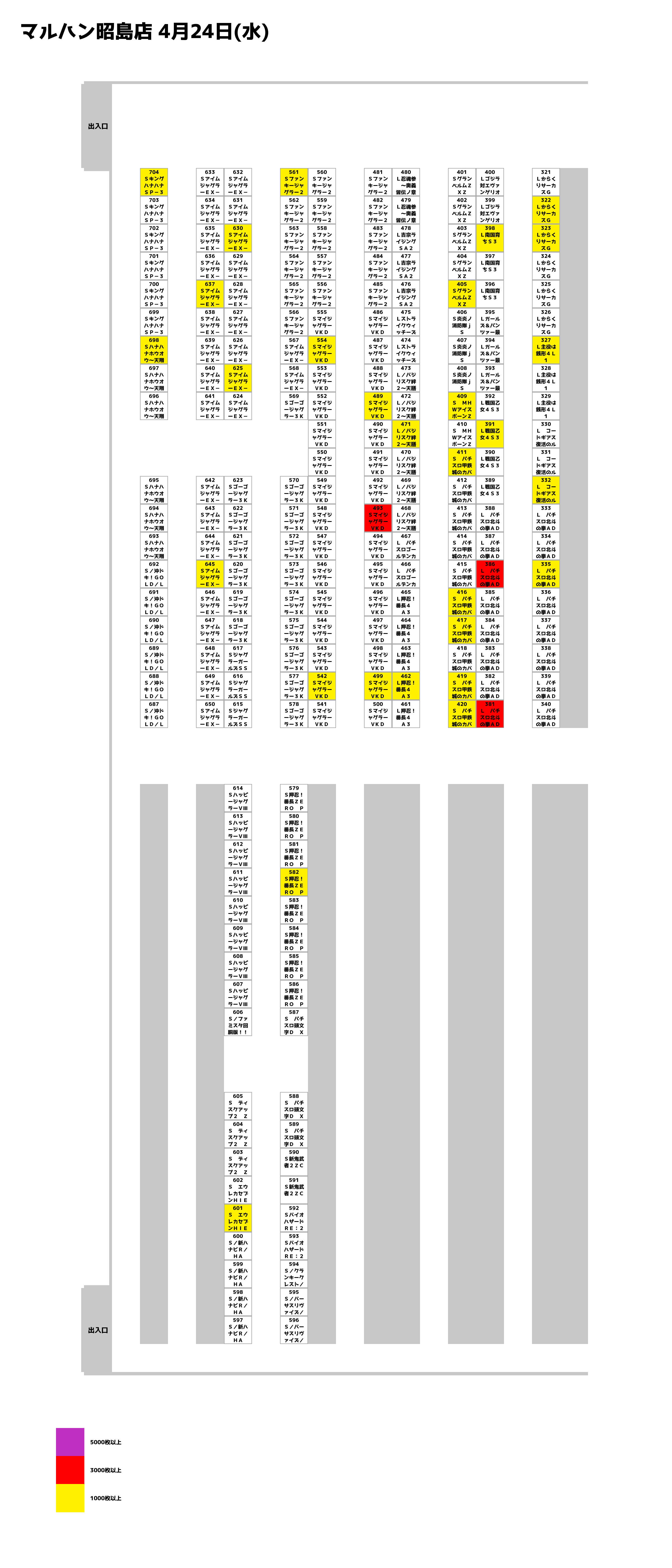 | 487 | 2,412G | -1,600枚 | 4 | 3 | 1/344.6 | 1/603.0 | 1/804.0 |