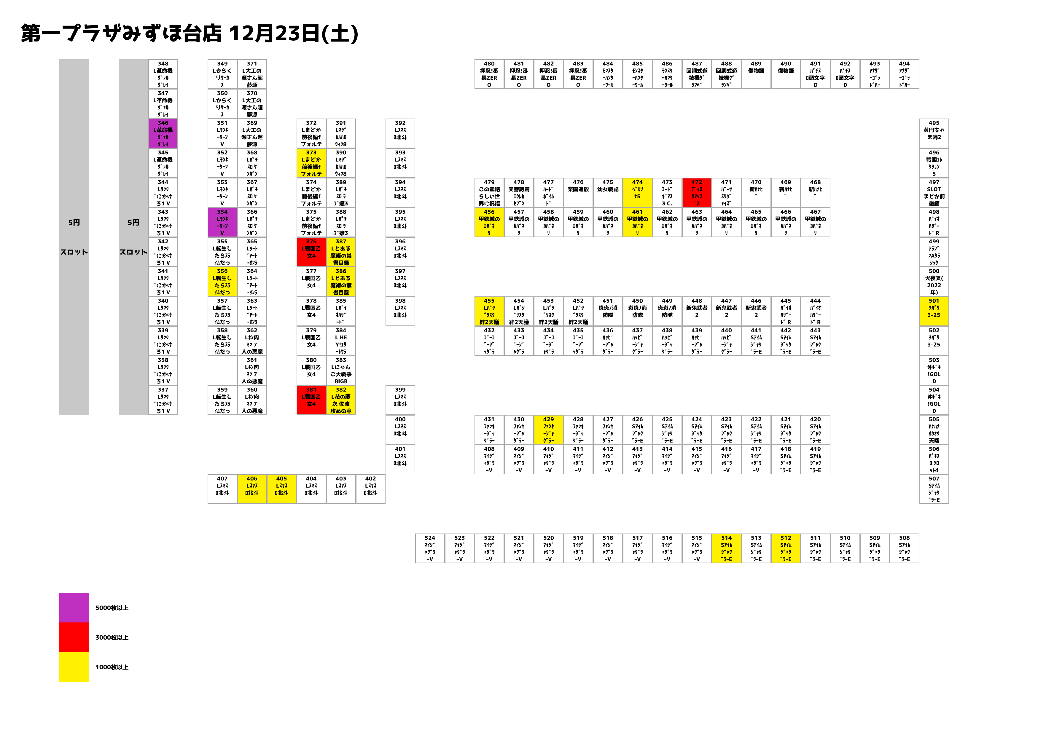 | 炎炎ノ消防隊 | 449 | 5,017G | +3,183枚 | 0 | 13 | 1/91.2 | 1/0.0 | 1/385.9 |